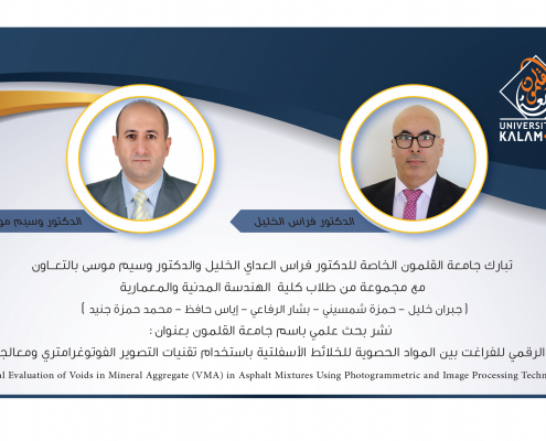 Wajdan.UOK2025-09-29 12:01:262025-11-08 12:18:20التقييم الرقمي للفراغت بين المواد الحصوية للخلائط الأسفلتية باستخدام تقنيات التصوير الفوتوغرامتري ومعالجة الصور