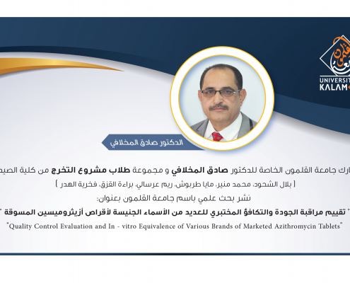 Wajdan.UOK2025-10-26 13:16:392025-11-08 12:17:32تقييم مراقبة الجودة والتكافؤ المختبري للعديد من الأسماء الجنيسة لأقراص أزيثروميسين المسوقة