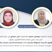 نُشر بحث علمي جديد باسم جامعة القلمون الخاصة للدكتورة بيلسان محمد والدكتورة منى حمادي في كلية الهندسة المدنية والمعمارية بعنـوان: التنبؤ بالمقاومة القصوى للأعمدة المطوقة بشرائح CFRP باستخدام الانحدار المتعدد والشبكات العصبونية “Multiple Regression and Neural Network-Based Models for the Prediction of the Ultimate Strength of CFRP-Confined Columns” في مجلة Infrastructures، ضمن مستوعبات SCOPUS الربيع […]