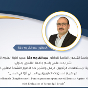 نُشر بحث علمي جديد باسم جامعة القلمون الخاصة للدكتور عبد الكريم دقة عميد كلية العلوم التطبيقية بعنـوان: ” الفعالية الحيوية لمستخلصات الزنجبيل، الرمان والشمر ضد الأطوار النشطة لطفيلي الجيارديا لامبليا مع تقييم مستويات الغلوبيولين المناعي IgE في المصل “ ” In Vivo Efficacy of Zingiber officinale (Zingiberaceae), Punice granatum (punicaceae) Extracts Against Giardia lamblia Trophozoites […]