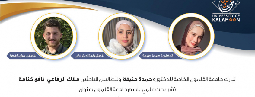 للدكتورة حمدة حنيفة وللطالبين الباحثين ملاك الرفاعي، نافع كنامة