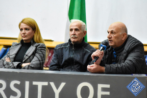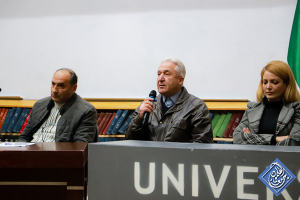 افتتح السيد رئيس الجامعة اللقاء مرحّباً بالطلبة الجدد، ومعبّراً عن سعادته بانضمامهم إلى أسرة الجامعة، ومتمنياً لهم عاماً دراسياً مليئاً بالنجاح والتميّز، حيث استعرض بدايةً أهم ملامح الانتقال من نظام الحياة المدرسية إلى الحياة الجامعية، داعياً الطلبة للاستفادة من تنوّع الثقافات والخبرات داخل الحرم الجامعي، كما قدّم شرحاً وافياً لنظام الدراسة الأكاديمي، ونظام الساعات المعتمدة والمعدلات، وتحدّث عن البنية التحتية المتطورة في الجامعة، مشيراً إلى أهمية الاستفادة منها، كما حثّ الطلبة للحفاظ على سمعة الجامعة ، مؤكداً أنهم شركاء في هذه المسؤولية.