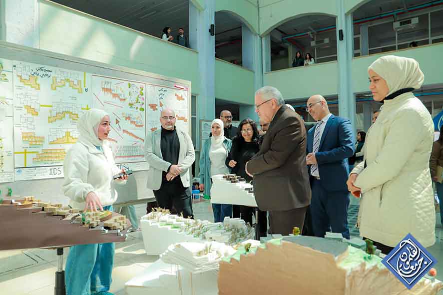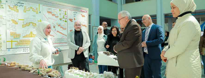 أقامت كلية الهندسة المدنية والمعمارية – تخصص الهندسة المعمارية- معرضاً لمشاريع نفذها طلاب الكلية من مختلف السنوات الدراسية، تميزت بتصاميم تعكس إبداع الطلاب وشغفهم بالمهنة، حيث تضمنت تصاميم مبتكرة لأماكن قديمة قابلة للترميم والتحديث، بالإضافة إلى مشاريع استعانت بالتصميم العمراني لأشهر المعالم الأثرية في بعض البلدان، كما قدم الطلاب مجسمات ثلاثية الأبعاد، تظهر تصوراتهم المبدعة في مجال التصميم العمراني، وقد أبدى السيد رئيس الجامعة اهتماماً بالغاً بالأفكار الخلاقة، ووجه الشكر والثناء للطلاب والأساتذة المشرفين على جهودهم المبذولة، كما قدم لهم النصائح اللازمة وشجعهم على الاستمرار في مسيرتهم المهنية.