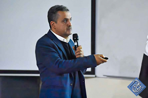 د.عدنان بدور، ومحاضرته بعنوان ” دور الكوادر الطبية في الحد من مقاومة الصادات وانتشارها من خلال ترشيد استخدام الصادات ورفع الوعي المجتمعي “.