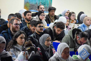 د.نشوان شجاع الدين، ومحاضرته بعنوان ” عرض نتائج دراستين أجريت في جامعة القلمون عن: الوعي المجتمعي حول استخدام الصادات”.