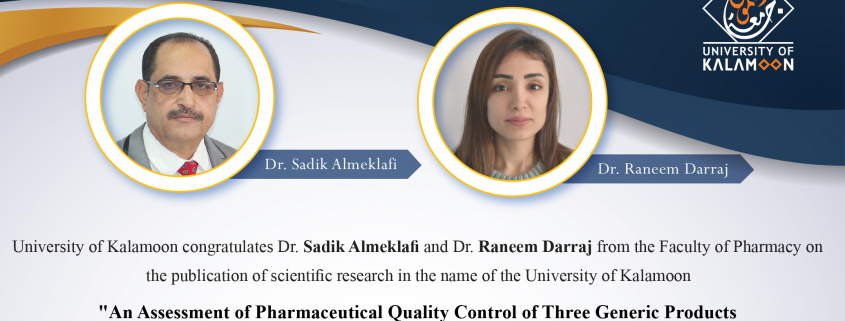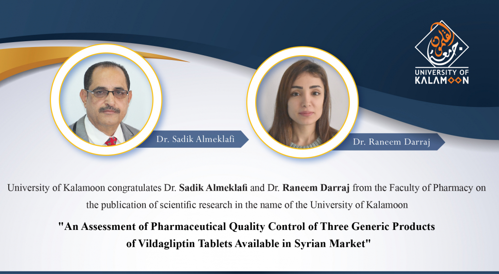 A new scientific research has been published under the name of the University of Kalamoon, authored by Dr. Sadik Al-Makhlafi and Dr. Raneem Darraj. The research, titled
