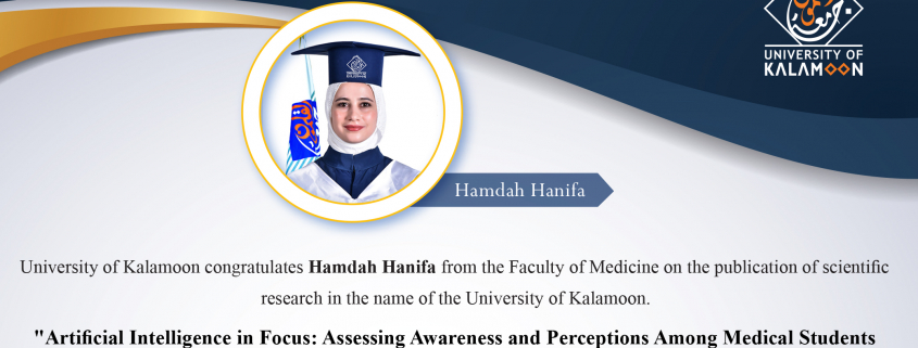 The University of Kalamoon extends its congratulations to Hamdah Hanifa, student from the Faculty of Medicine has published a new scientific research paper, entitled “Artificial Intelligence in Focus: Assessing Awareness and Perceptions Among Medical Students at Three Private Syrian Universities” in the journal BMC Medical Education, which is indexed in Scopus under the first quartile (Q1) and has an Impact Factor of 10.4