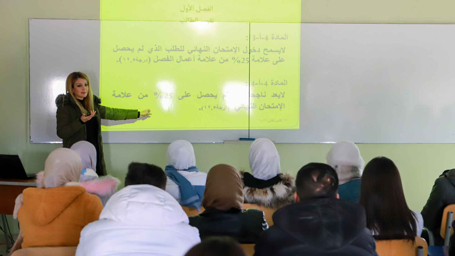 تم تزويّد القاعة ( 227 ) بالإنترنت مع الحاسوب المحمول الخاصّ بالكليّة