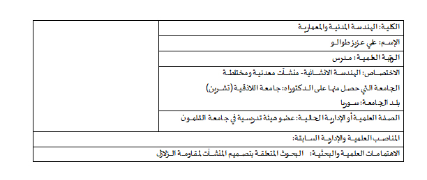 بناءَ على اقتراح كلية الهندسة المدنيّة والمعماريّة يمنح مجلس جامعة القلمون الخاصّة الدرجات الآتية:
