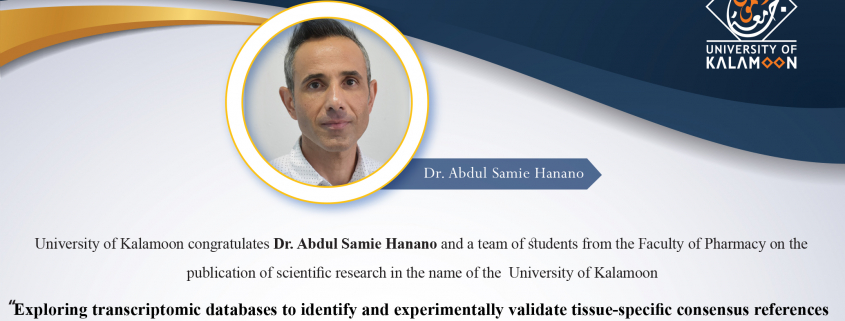 The University of Kalamoon extends its congratulations to Dr. AbdulSamie Hanano and a team of students have published a new scientific research paper, entitled “Exploring transcriptomic databases to identify and experimentally validate tissue-specific consensus reference genes for gene expression normalization in BALB/c mice acutely exposed to 2,3,7,8-Tetrachlorodibenzo-p-dioxin”, in the prestigious journal Current Research in Toxicology (Scopus Q1, Impact Factor: 3), published by Springer Nature.