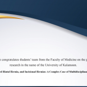 /in Scientific Research /by Wajdan.UOKThe University of Kalamoon extends its congratulations to team of students (Hamdah Hanifa, Mohi Alddin Mahouk, Fadiah Albaroudi, Enas Khallouf, Dana Abu Nukta, Ranim Al-Rihani, Malek Albalkhi, Basel Alsaleh, Youssef Zeeb, Ramez Altair, Rawad Asami, and Abdullah Shekh Najjaren) from the Faculty of Medicine have published a new scientific research paper, entitled “ Accessory Spleens, […]