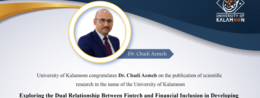 The University of Kalamoon extends its congratulations to Dr. Chadi Azmeh has published a new scientific research entitled “Exploring the dual relationship between fintech and financial inclusion in developing countries and their impact on economic growth: supplement and substitute?” in PLOS ONE journal (Q1, Citescore: 6.2).